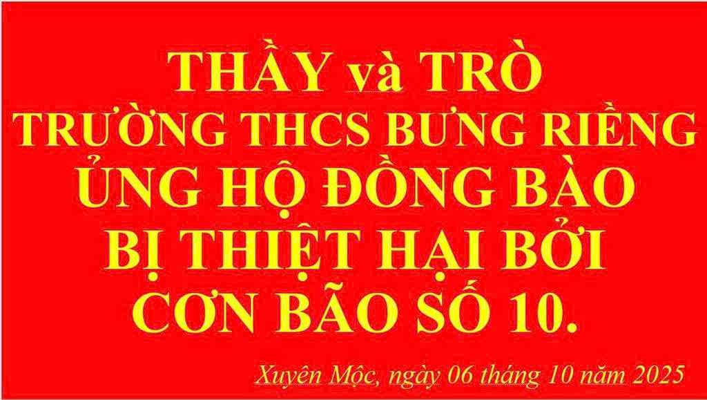 Hưởng ứng lời kêu gọi của các cấp, các ngành và phát huy truyền thống “Lá lành đùm lá rách” của dân tộc, sáng ngày 6/10/2025, Trường THCS Bưng Riềng đã long trọng tổ chức lễ phát động quyên góp, ủng hộ đồng bào các tỉnh miền Trung đang phải gánh chịu những thiệt hại nặng nề do cơn bão số 10 gây ra. Buổi lễ phát động diễn ra trong không khí trang nghiêm và xúc động ngay sau giờ chào cờ đầu tuần, với sự tham gia của Ban Giám hiệu, toàn thể cán bộ, giáo viên, nhân viên và các em học sinh nhà trường. Phát biểu tại buổi lễ, thầy Hoàng Minh Tuấn – Hiệu trưởng nhà trường đã chia sẻ về những mất mát, khó khăn mà người dân vùng bão lũ đang phải trải qua. Thầy nhấn mạnh, mỗi một sự đóng góp, dù là nhỏ nhất, đều là nguồn động viên quý báu, thể hiện tinh thần đoàn kết, sẻ chia, giúp đồng bào vượt qua giai đoạn khó khăn này. Đây cũng là một bài học thực tế đầy ý nghĩa về lòng nhân ái và trách nhiệm với cộng đồng dành cho các em học sinh. Ngay sau lời phát động, toàn thể cán bộ, giáo viên và đại diện các lớp học sinh đã lần lượt tham gia ủng hộ trực tiếp tại thùng quyên góp. Tinh thần tương thân tương ái lan tỏa mạnh mẽ trong toàn trường, thể hiện qua từng hành động thiết thực. Kết thúc buổi vận động, nhà trường đã ghi nhận tổng số tiền quyên góp được là 7.545.000 đồng (Bảy triệu năm trăm bốn mươi lăm nghìn đồng). Toàn bộ số tiền này sẽ được nhà trường tổng hợp và nhanh chóng gửi đến Ủy ban Mặt trận Tổ quốc Việt Nam xã Xuyên Mộc để chuyển đến tận tay đồng bào vùng bị ảnh hưởng bởi bão lụt trong thời gian sớm nhất. Hoạt động ý nghĩa này không chỉ là sự hỗ trợ về vật chất mà còn là nguồn động viên tinh thần to lớn, thể hiện trọn vẹn tình cảm và trách nhiệm của thầy và trò Trường THCS Bưng Riềng luôn hướng về miền Trung ruột thịt.