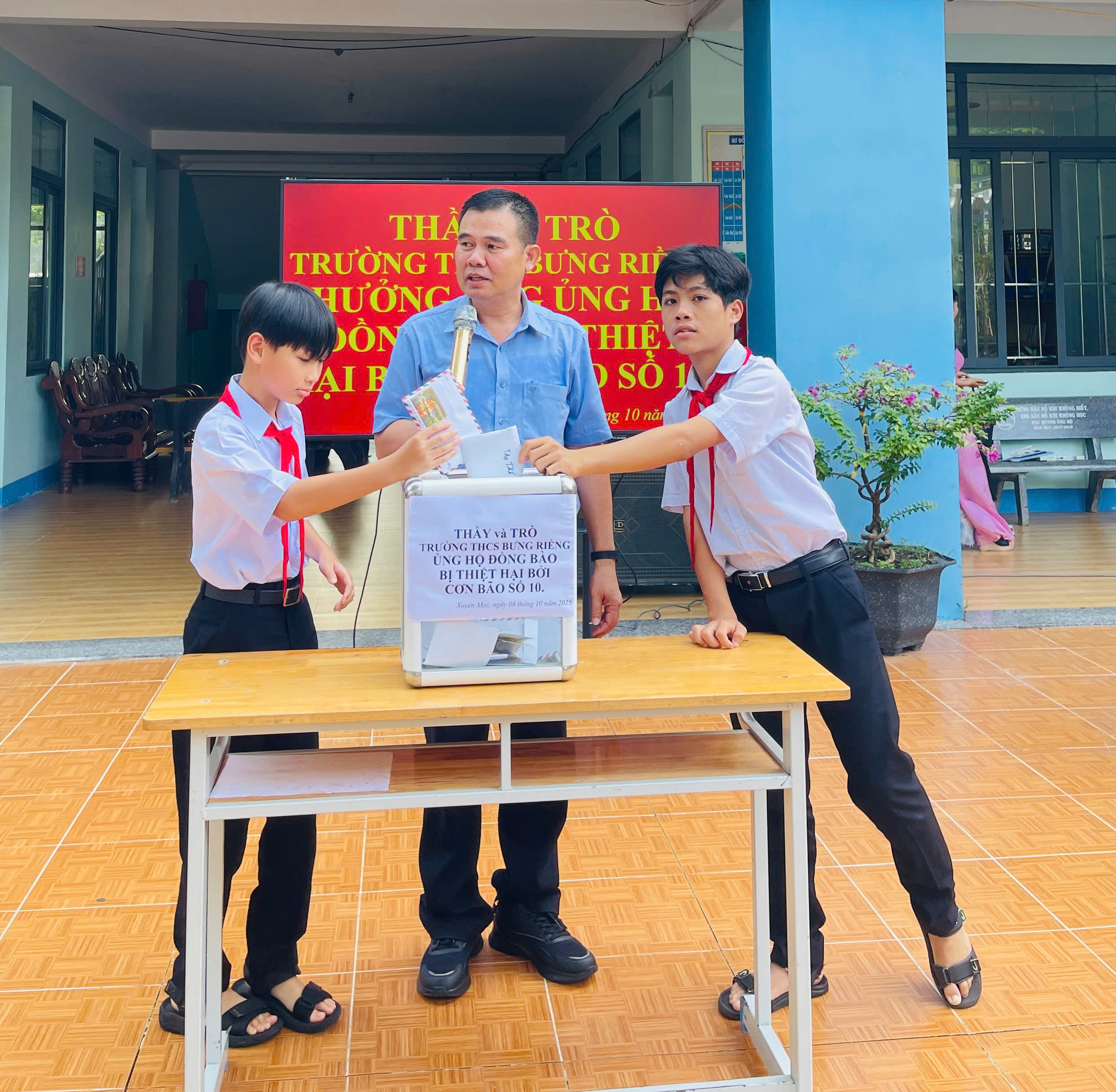 THẦY VÀ TRÒ TRƯỜNG THCS BƯNG RIỀNG CHUNG TAY HƯỚNG VỀ MIỀN TRUNG RUỘT THỊT